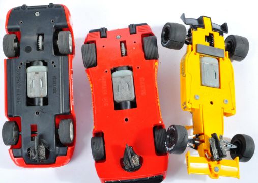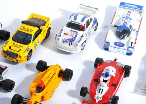 A collection of x16 assorted Hornby Scalextric and Scalextric type slot racing cars and accessories. Examples to include No. C429 Ford RS200, C391 Ferrari GTO, C449 Porsche 959, C434 Lotus Honda Camel, C374 Canon Williams Honda F1 and others along with an assortment of spare wheels, shells and part accessories.