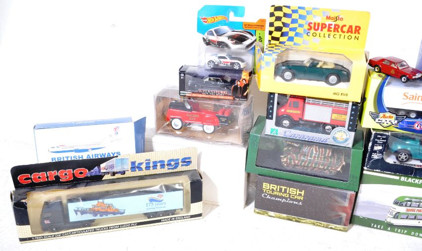 A large collection of assorted boxed diecast model cars, trucks and lorries of various scales and makers to include; Atlas Editions British Touring Car Champions, Trams Of The World, Ultimate Tank Collection, New Ray Lotus Elise, Cararama Fire Brigade, Matchbox Frost Fighter, Corgi Vanguards Ford Capri and others.