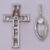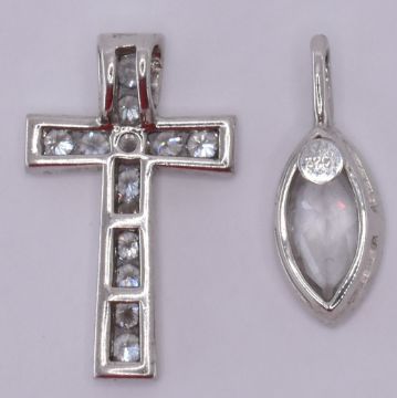 Two white gold pendants to include a 14ct gold crucifix pendant set with white stones (marked 14k, weight 1.5, measures 2cm) together with a 9ct white gold navette shaped pendant (marked 375, weight, 0.85g, measures 1.7cm).