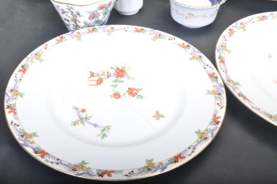 A large collection of 20th century ceramic porcelain table ware and cabinet ware. The collection comprising of 19th century Victorian dinner plate made by L. Bernardaud & Co for Waring & Gillow LTD, Coalport sandwich plate, saucers, cups, Poole pottery cups and pin tray and other cabinet cups and saucers. Makers mark to the underside. Measures 7 cm.