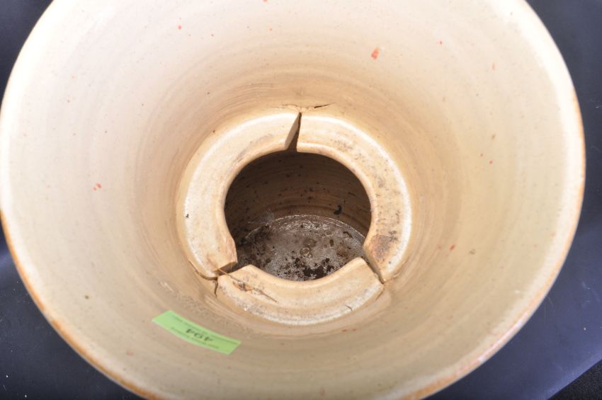 A large late 19th century Victorian Lipscombe and Co Patentees London stoneware vase / pot. The large vase of a baluster form decorated with impressed geometrical motifs. Impressed maker mark to the inside. Measures 53 cm x 27 cm diameter.