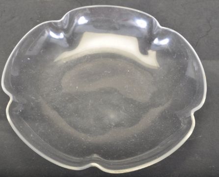 A matching set of four 19th Century Victorian clear glass dishes of flower head form with remnants of gilt detailing to the rims. Each rim measures approx; 15cm diameter.