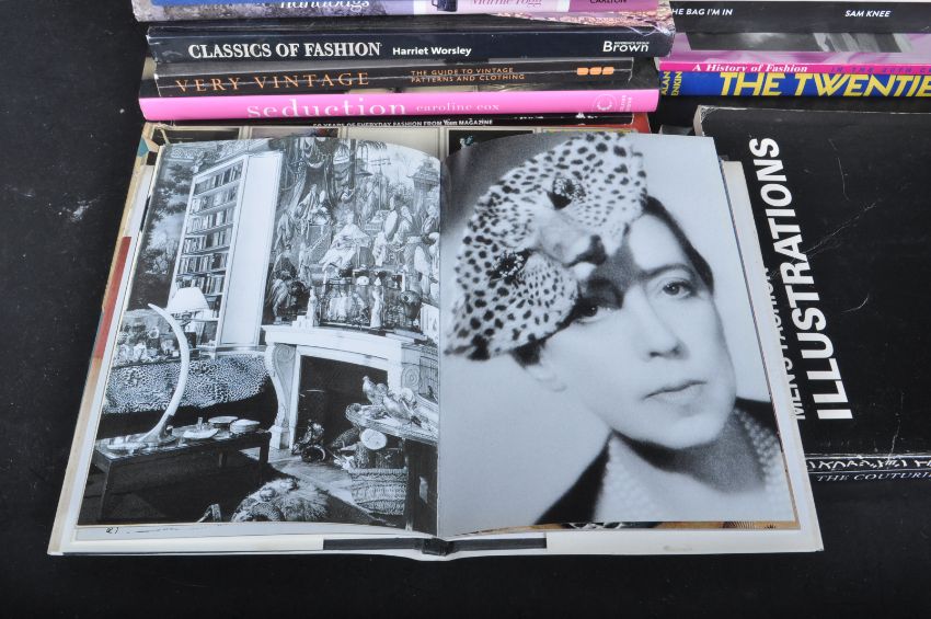 A large collection of vintage reference fashion books. The collection includes: Man’s Fashion Illustrations - Graphic Sha, Men’s Fashion The complete Sourcebook - John Peacock, Dressing In The Dark - Marion Maneker, The Changing World Of Fashion - Ernestine Carter, Fashion Memoir - Elsa Schiaparelli, Chanel The Couturiere At Work, The Lives Of Lee Miller - Antony Penrose, Seduction - Caroline Cox, and many more books.