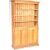 A retro vintage 1960's oak school opened face bookcase having a flared pediment top over three shelves atop a twin door cabinet opening to reveal shelves with a pediment base. Measures: 206cm x 122cm x 42cm.