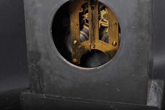 A Victorian 19th century slate and marble 8-day mantel clock. The clock with gilded face having inset 8-day movement