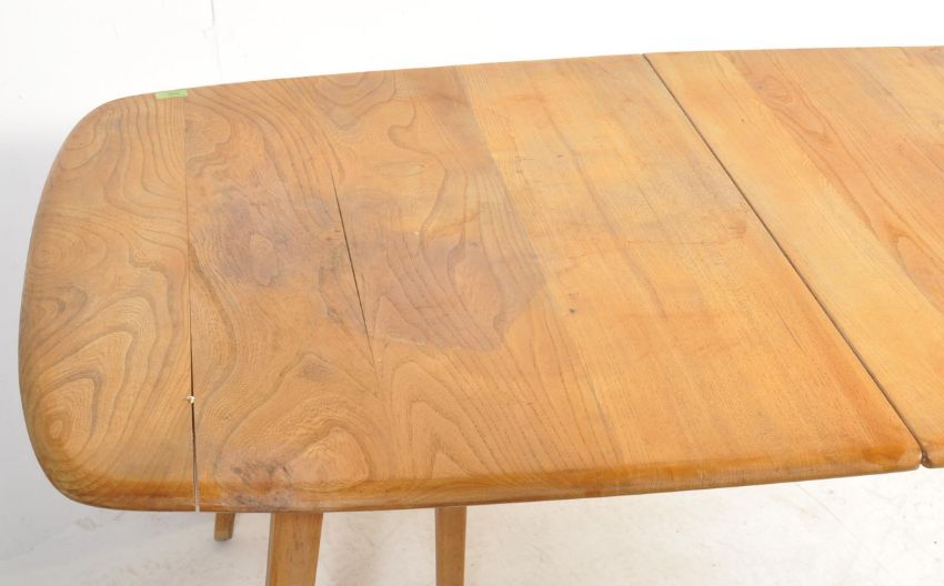 Ercol - A vintage retro mid 20th Century circa 1960’s blonde beech and elm wood refectory plank dining table raised on shaped supports. Condition: good overall, the top is stained and split in two places ( no major damage just need to be re-glued on the top joints) no spare leaf. Measures 71cm h x 153cm w x 87cm d.