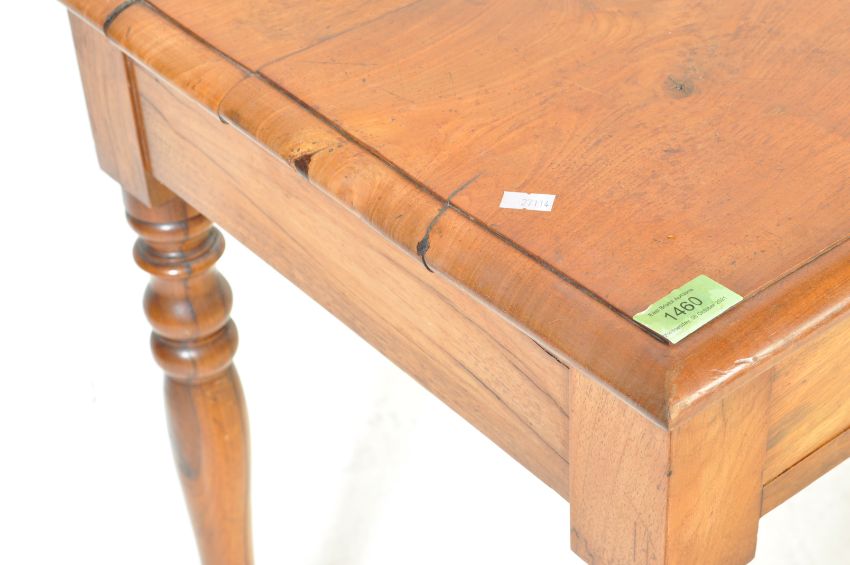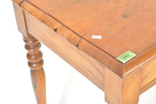 A 19th century Victorian mahogany writing table desk being raised on turned legs with fitted drawers to the frieze, under table top above