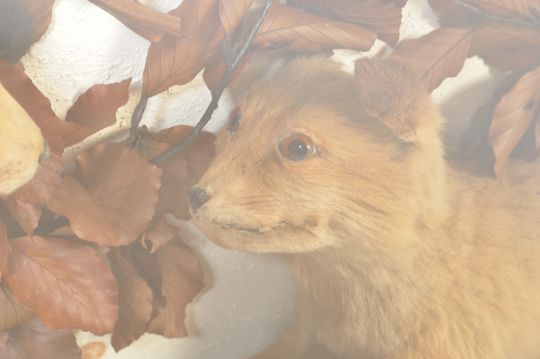 Early 20th Century taxidermy of fox and cub with a rabbit. Set within a glazed case raised on a naturistic base. Measures 52cm x 77cm x 21cm.