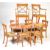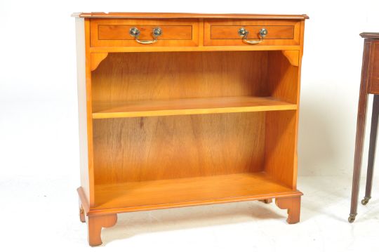 A good George III revival 20th century mahogany dining room suite comprising a bow front sideboard dresser, pedestal dining table and set of dining chairs. All raised on square tapering legs, the sideboard with a series of drawers and end cupboard, the pedestal table with additional leaves