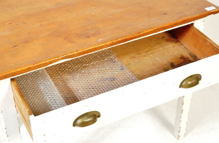 A 19th century Victorian painted side / hall table having a flared stripped top over a single drawer to the frieze raised on upright tapering supports. Measures, 70 cm H x 92 cm W x 48 cm D