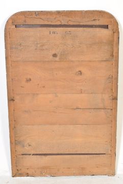 A 19th century Victorian wall mirror / mantle mirror having black ebonised frame with gilt detailing and dome top. Measures approx. 124cm x 81cm.