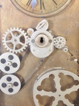 Auto Time Checkers Co of Manchester - An early 20th century wall mounted clock having a glazed front with exposed mechanism. The clock has Roman numerals to the chapter ring. Comes with keys.