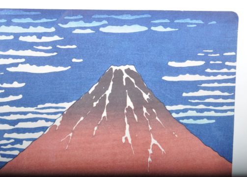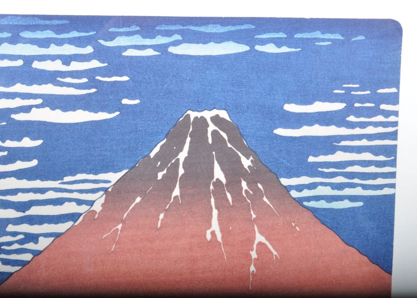 After Katsushika Hokusai (1760-1849) -  'Fine Wind, Clear Morning (Red Fuji) from 36 Views of Mount Fuji', ukiyo-e woodblock print in colours. Japanese characters to the left. Framed and glazed. Measures 36 x 50cm.