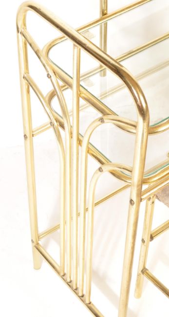 A retro vintage Hollywood Regency / Art Deco style dressing table and chair having a  brass tubular frame with glas platforms and mirror to the centre. Comes with matching chair
