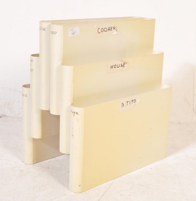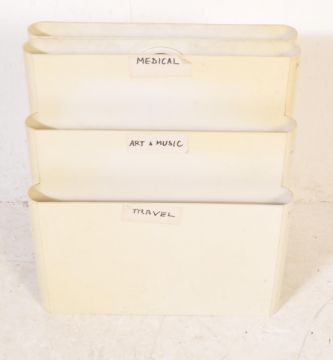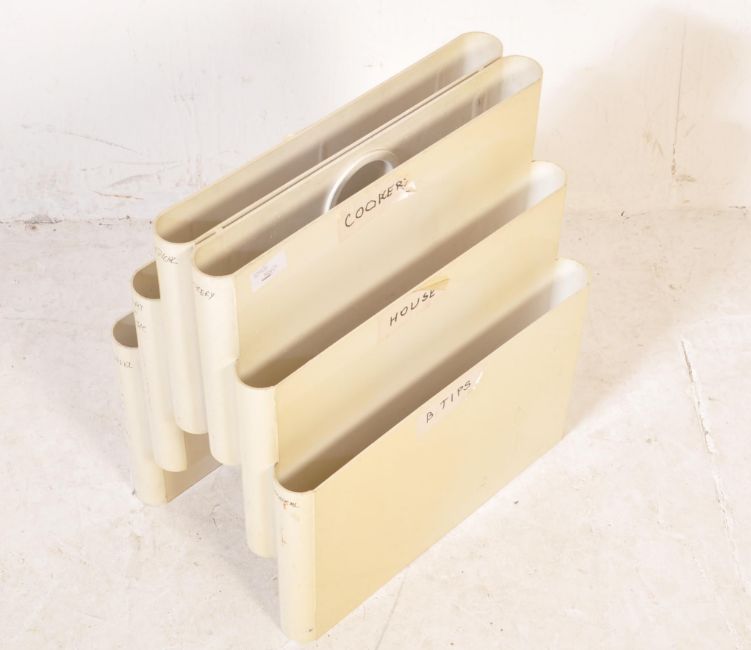 Giotto Stoppino - Kartell - A mid 20th Century Italian retro vintage plastic formed magazine rack / record rack by Giotto Stoppino for Kartell. The moulded white plastic having two raised sections flanked by lower sections. Impress marks to base. Measures 35cm x 40cm x 19cm.