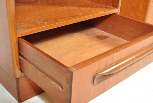 Victor B. Wilkins - G-Plan Fresco range - A pair of original retro vintage 1960's teak wood bedside cabinet having a large open shelved section above a single drawer raised on plinth base. Measures; 53cm x 46cm x 41cm.