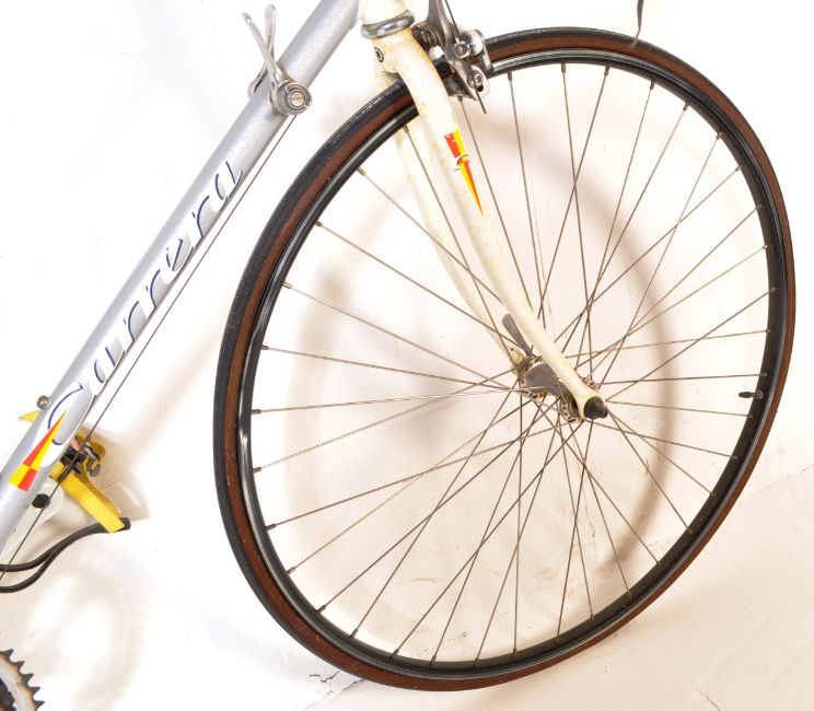 A 1990's Carrera Monla Racing Bike / bicycle. The bike having shaped griped handlebars, leather saddle, spoked wheels and white painted frame.   Original decals to the frame