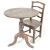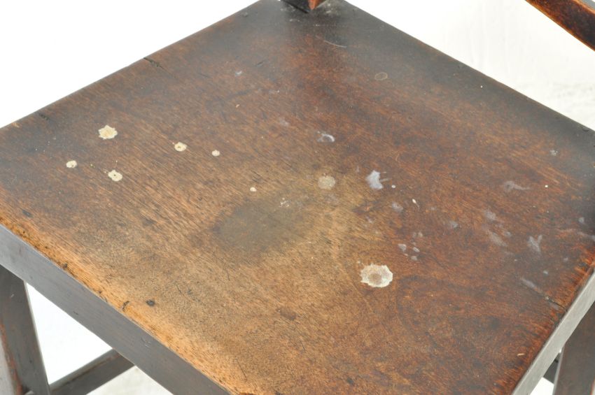 An 18th century George III oak tilt top pedestal wine table together with an 18th century North Country dining chair. The table having a circular top with turned column raised on splayed base together with a ladder back chair having saddle seat raised on square legs united by stretchers. Measures 74cm x 71cm x 71cm
