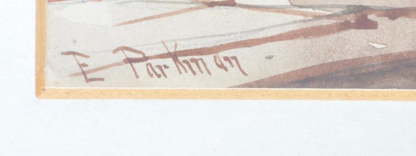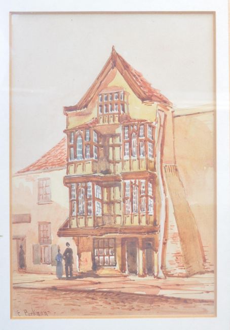 Ernest Parkman (1856-1921) - A group of four late 19th century Victorian Bristol related watercolour painting by E. Parkman. The collection includes: Old Houses In Pithay (Demolished 1886), Ancient Houses In Lewins Mead, Fourteen Stars Tavern - Counter slip, Ancient Timbered House Lewins Mead ( Demolished 1886). Artist signature to the lower corner. Framed and glazed. Measures 34 cm x 27 cm.