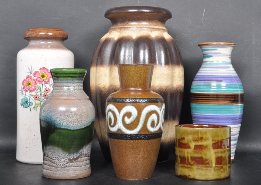 A collection of retro vintage mid 20th century West German pottery. Makers stamp to the underside, Signs of wear and tear commensurate with its age. Measures 35cm