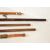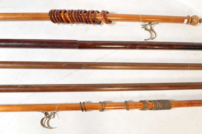 A large 20th century wood and brass curtain rail having finial decoration to each end. Together with another. Measures approx. 323cm longest.