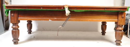 Early 20th Century circa 1910 snooker table by Riley's of Accrington of mahogany construction, slate base, felt baize raised on turned legs. Measurements 82cm x 257cm x 133cm.