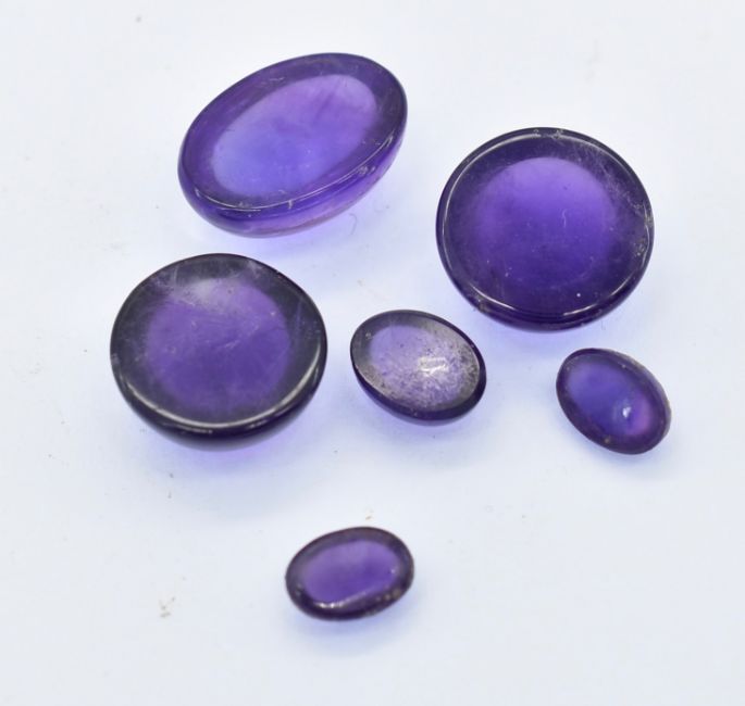 A quantity of assorted amethyst cabochons. Weight 21cts. Measurement guide longest approx 14mm.