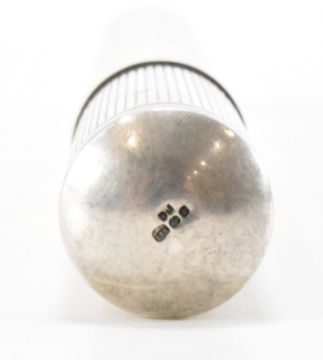 A vintage silver hallmarked cigar tube case having an engraved tubular body with a gold plated collar engraved with initials. Import marked for London 1987. Measures 18cm. Weight 51.8g.