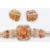 A hallmarked 1950's 9ct gold citrine and diamond bracelet and earrings demi parure jewellery suite. The bracelet having a central cluster of eight round cut citrines within a pierced mount, with further citrines and diamonds set to the shoulders, on a flat snake chain with clasp. Hallmarked London 1953 to the bracelet clasp, earrings test as 9ct gold. Bracelet measures 7 inches, earrings measure 2cm wide. Central citrine measures 7.5mm. One citrine missing to one earring, one diamond missing to bracelet, otherwise good condition. Weight 45.1g.