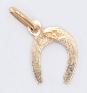 An 18ct gold horseshoe charm pendant.   Marked 750, tests indicate 18ct gold. Weight 0.6g. Measures 1.8cms inc bale.