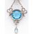 An early 20th Century Edwardian gold and silver pendant necklace set with paste stones. The necklace having a gold chain with white stones set throughout, the drop being set with an oval cut blue paste stone with a further large round stone below with bow garland embellishment and further white accent stones. The lower part of the pendant being detachable to form a brooch (hinge pin to verso). Chain has removable segment for adjusting length. Chain measures 18 or 15 inches. Drop measures 8.5cm. Tests to chain indicate 9ct gold. Weight 33.5g. Principle stone measures 1.8cm diameter.