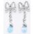A pair of white gold diamond and blue stone drop earrings. The studs in the form of bows set throughout with diamonds, with diamond drops below culminating in faceted blue stone drops. Unmarked but tests indicate 18ct gold. Measures 4cm. Diamonds measure 2.7mm diameter. Weight 7.1g.