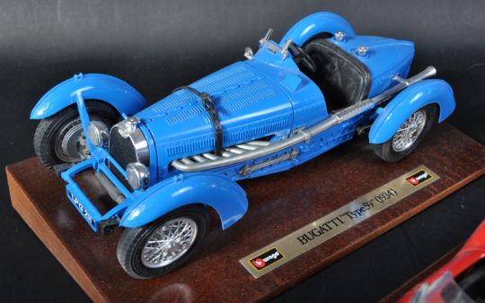 Estate of Dave Prowse - a collection of Prowse's personally owned diecast cars and other automobile memorabilia displayed in his office to include; Bburago 1/18 scale Bugatti Type 59 and Ferrari 250 Testa Rossa, Franklin Mint (?) Ford Sunliner and a Ferrari car air freshener.