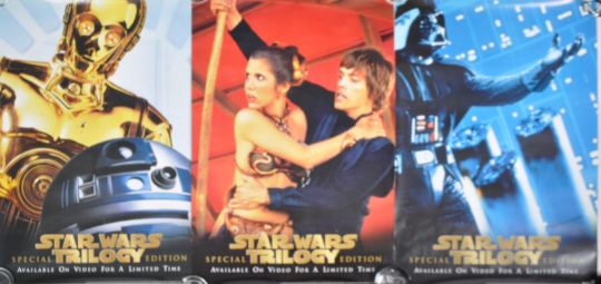 Estate of Dave Prowse - Star Wars - set of x3 original Special Edition Star Wars Trilogy VHS promotional advertising posters. The first showing Leia and Luke, the second featuring R2D2 and C3PO and the third showing Darth Vader. All rolled. Each approx; 71x50cm