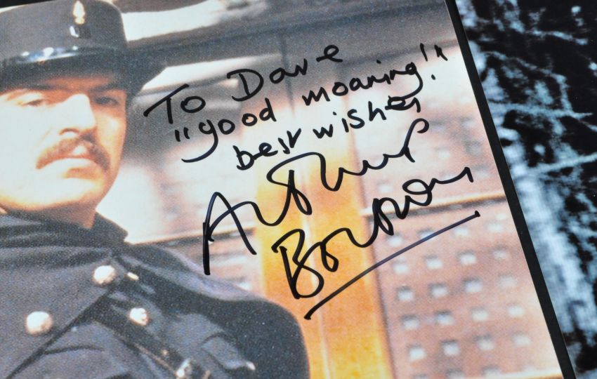 Estate of Dave Prowse - Allo Allo (BBC Sitcom) - Sam Kelly (1943-2014) and Arthur Bostrom - autographed 8x12" photographs from the classic sitcom. Both dedicated to Prowse in some way. Obtained personally by Prowse.
