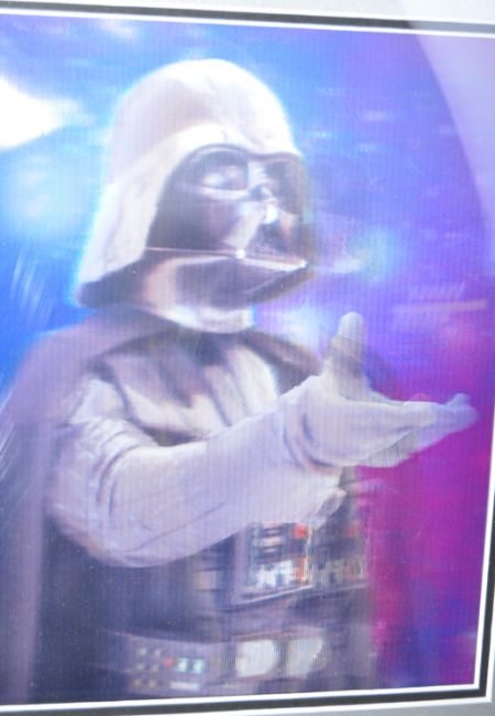 Estate of Dave Prowse - Star Wars - a framed Darth Vader lenticular display, featuring a 3D holographic image of Vader, with name plaque beneath. Framed (acrylic). Total size approx; 36cm x 44cm.