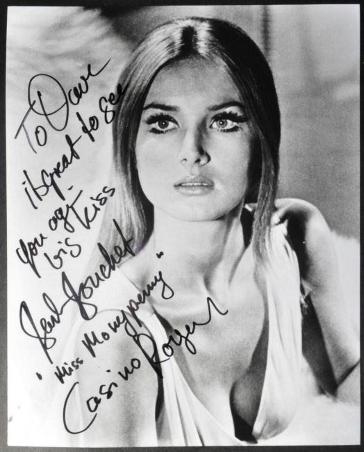 Estate of Dave Prowse - Barbara Bouchet - James Bond / Star Trek - autographed black and white photograph, signed in black ink ' To Dave - Its great to see you again, big kiss - Barbara Bouchet - Miss Moneypenny - Casino Royale '. Obtained personally by Prowse.