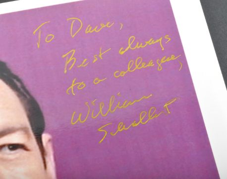 Estate of Dave Prowse - Star Trek - William Schallert (1922-2016) - autographed 8x10" colour photograph from the franchise, signed neatly by Schallert in gold ink ' To Dave, Best Always To A Colleague, William Schallert '. Obtained personally by Mr Prowse.