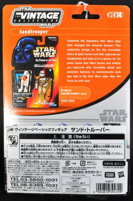 Estate of Dave Prowse - Star Wars - a Takara Tomy 2010 made Kenner Star Wars Vintage Collection moc carded action figure ' Sandtrooper '. Japanese import. Figure unopened and mint. Bubble slightly crushed, but not breached. Personally owned by Prowse.