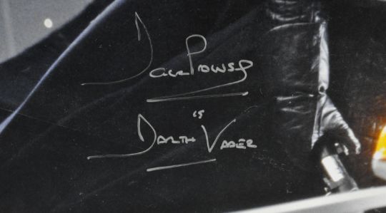 Estate of Dave Prowse - Star Wars - Dave Prowse (1935-2020) - a large 23"x33" (A1) signed photograph of Darth Vader in the famous scene from Empire Strikes Back. Signed neatly by Prowse in silver ink to the centre, with character name added. High quality image. Some edgewear, but would frame well.
