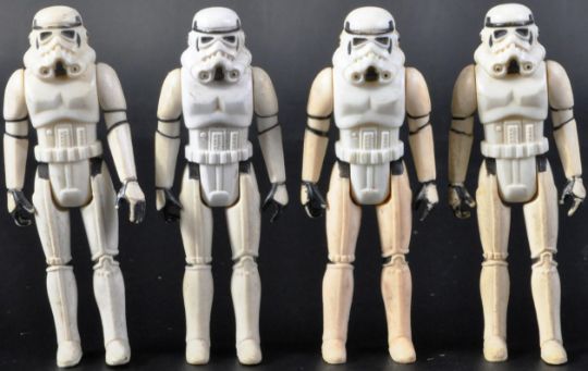 Estate of Dave Prowse - Star Wars - four original vintage Kenner / Palitoy made Star Wars action figures ' Stormtrooper ' (x4). All GMFGI Hong Kong 1977 COO. No weapons present. Various conditions.
