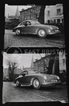 Estate of Dave Prowse - Sean Connery - James Bond - x3 large format contact sheet photographs showing Connery alongside his Porsche (PAV 655). The images show Connery in a variety of poses with his vehicle, appearing to have been taken in London. Images from this photoshoot do exist, but some of these we believe to be unseen 'out takes' from the shoot. Each page measures approx; 12x9.5". How Prowse came by them, or how he relates to them is unknown.