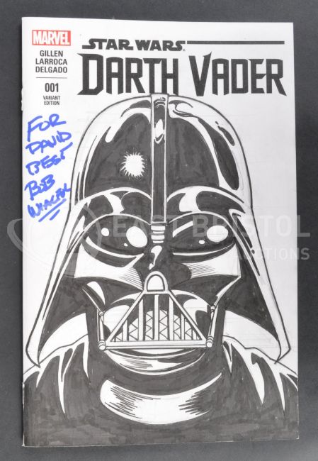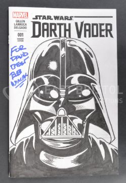 Estate of Dave Prowse - Star Wars - Marvel Comics 001 Star Wars Darth Vader (2015) - unique custom artwork cover drawn and signed to Prowse by the artist. Features a mixed media (pencil, ink and watercolour) painting of Vader to the cover. Personally gifted to Prowse by the artist.