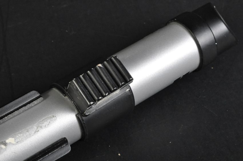 Estate of Dave Prowse - Star Wars - a vintage near-full-size replica Darth Vader lightsaber. Solid model, with no moving parts. Appearing to be made from resin or similar material. Some parts damaged / missing. Presumed to be a fan made replica. Measures approx; 26cm long.