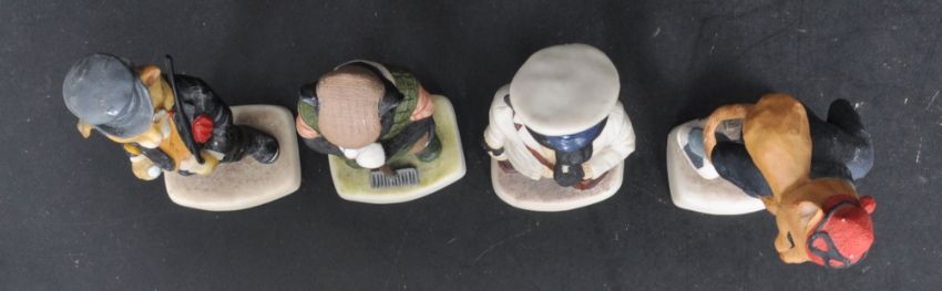 Robert Harrop - Purrfect People - A collection of four resin figurines comprising of Milkman PP05, Morning After PP10, Gentleman Gardener PP02A, Burglar Ginger PP01C Measures 15cm. Makers mark to the underside. Measures 15cm tall.