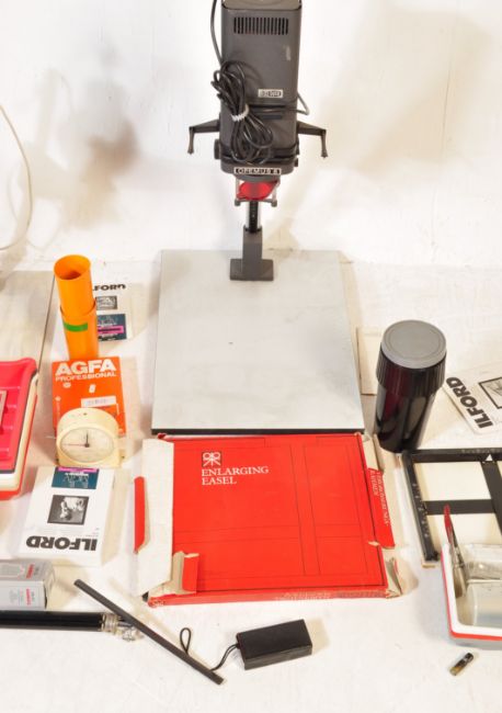 Of Photography Interest - A large collection of vintage 20th century photography / darkroom equipment comprising of enlargers, photo paper and more.