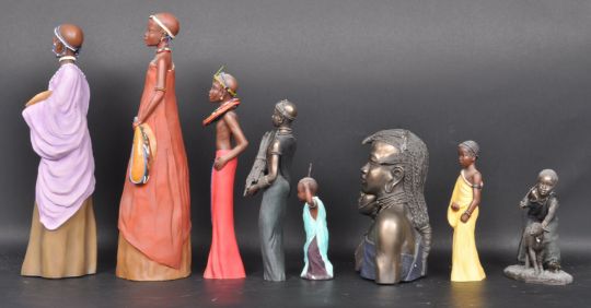 A collection of six vintage 20th century Soul Journeys resin patina finish figurines, comprising of Kanjara, Youthful days, Jewel of the Tribe and more. Largest measures 55cm.