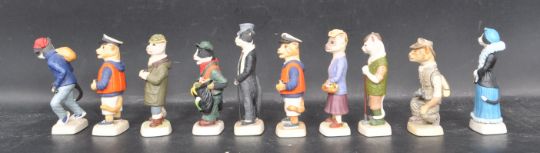 Robert Harrop - Purrfect People - A collection of resin figurines comprising of On Safari PP14, Burglar PP01, Glamour Puss PP13, Lady Gardener PP08, Binman Black & White PP12a, Gentleman Gardener PP02, The Seafarer PP15, Night On The Town PP09a, Birdwatcher Tabby and more. Largest measures 16cm.