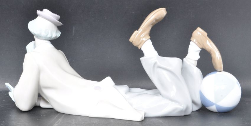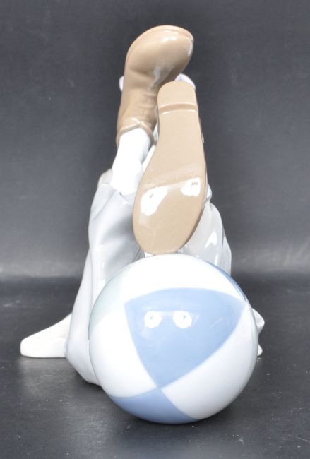 A large vintage retro 20th century ceramic porcelain Spanish Lladro “ Clown “ 4618 “ figurine. The figurine depicting a clown with a ball. Makers marks to the underside.