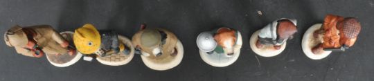 Robert Harrop - Country Companions / Doggie People - A collection of six resin figurines comprising of  a Cocker Spaniel Shooting CC101B, Beagle Waiter CC99, Irish Setter CC20, Bloodhound CC26, Dalmatian CC59, and more. Measures 15cm. Makers mark to the underside. Measures 17cm tall.